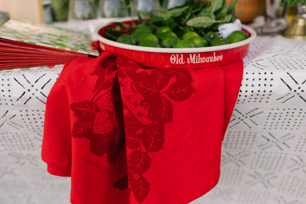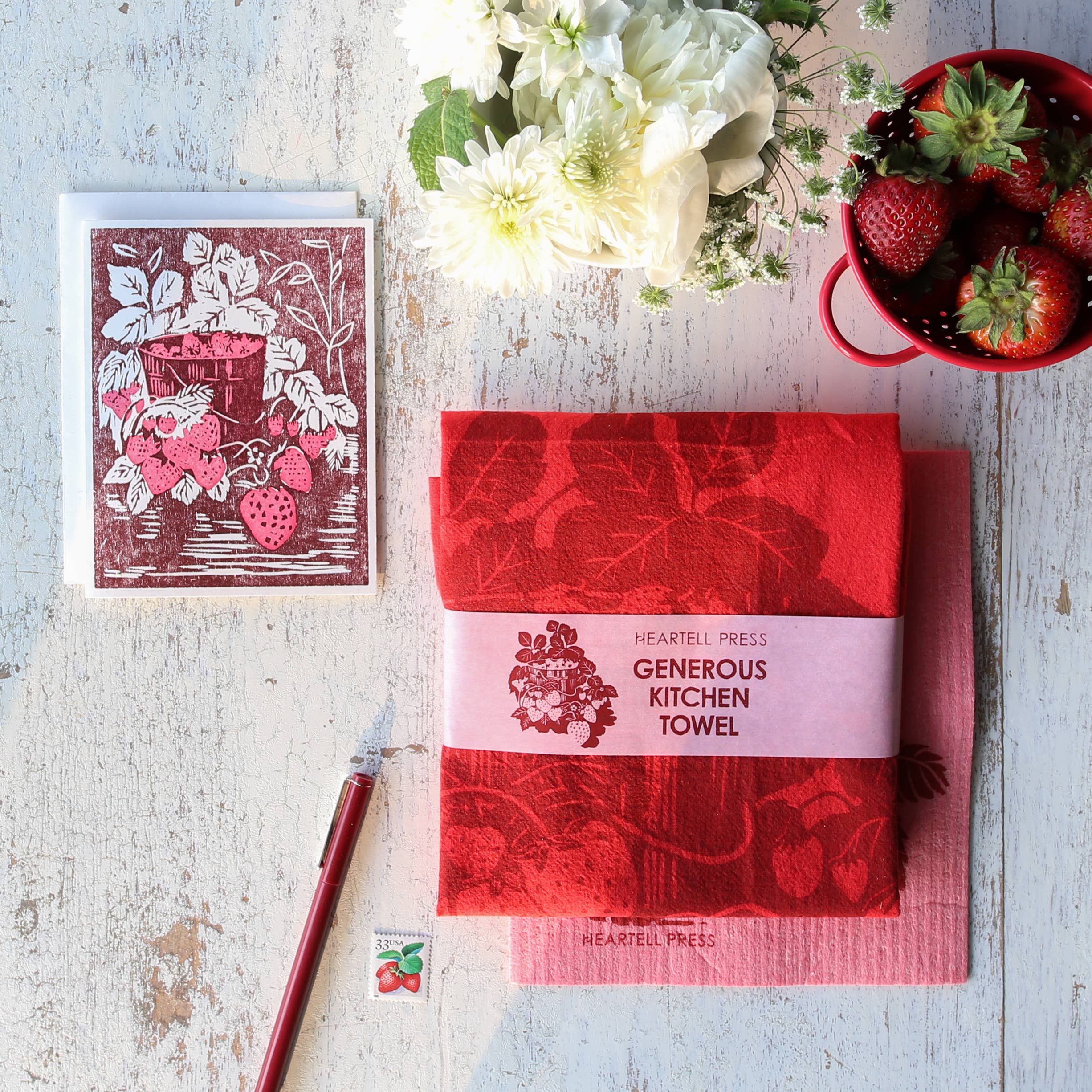 If you try to enjoy a rich and varied diet without stains, you’re setting yourself up for more mealtime woes than wows. This vivid Generous Kitchen Towel will let you focus on sharing life’s greatest pleasures (like a pail overflowing with freshly picked strawberries) with the people you love, instead of stressing over spilled juice. Ample proportions & absorbent cotton dyed and printed with safe, eco-friendly processes make this big-hearted towel a though Absorbent double weight 100% cotton Extra generous proportions (27” x 27”) Dyed with non-toxic, GOTS-certified pigments Screen printed with eco-friendly, phthalate-free inks 100% recycled and recyclable packaging Designed and printed in the Midwest USA Machine wash and dry Abundance is a state of mind that’s easier to cultivate when you have sustainable tools that let you focus on what’s important. Generous Kitchen Towels are as large as your appetite for great meals & as colorful as the people you share them with.