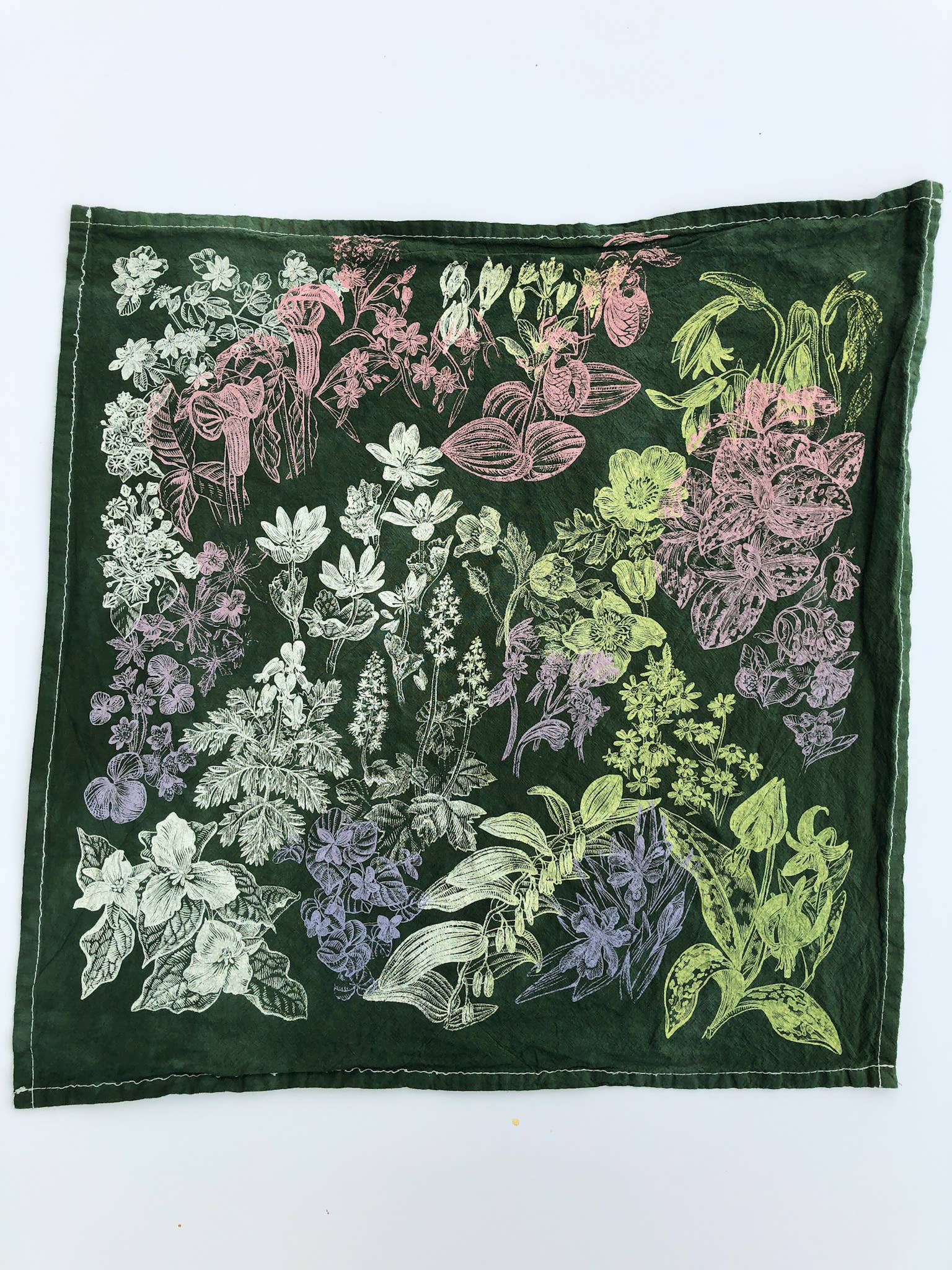 20x20 in cotton flour sack towel, hand-dyed and hand printed with original illustration. Color may vary throughout the batch, this is the joy of hand dyeing!