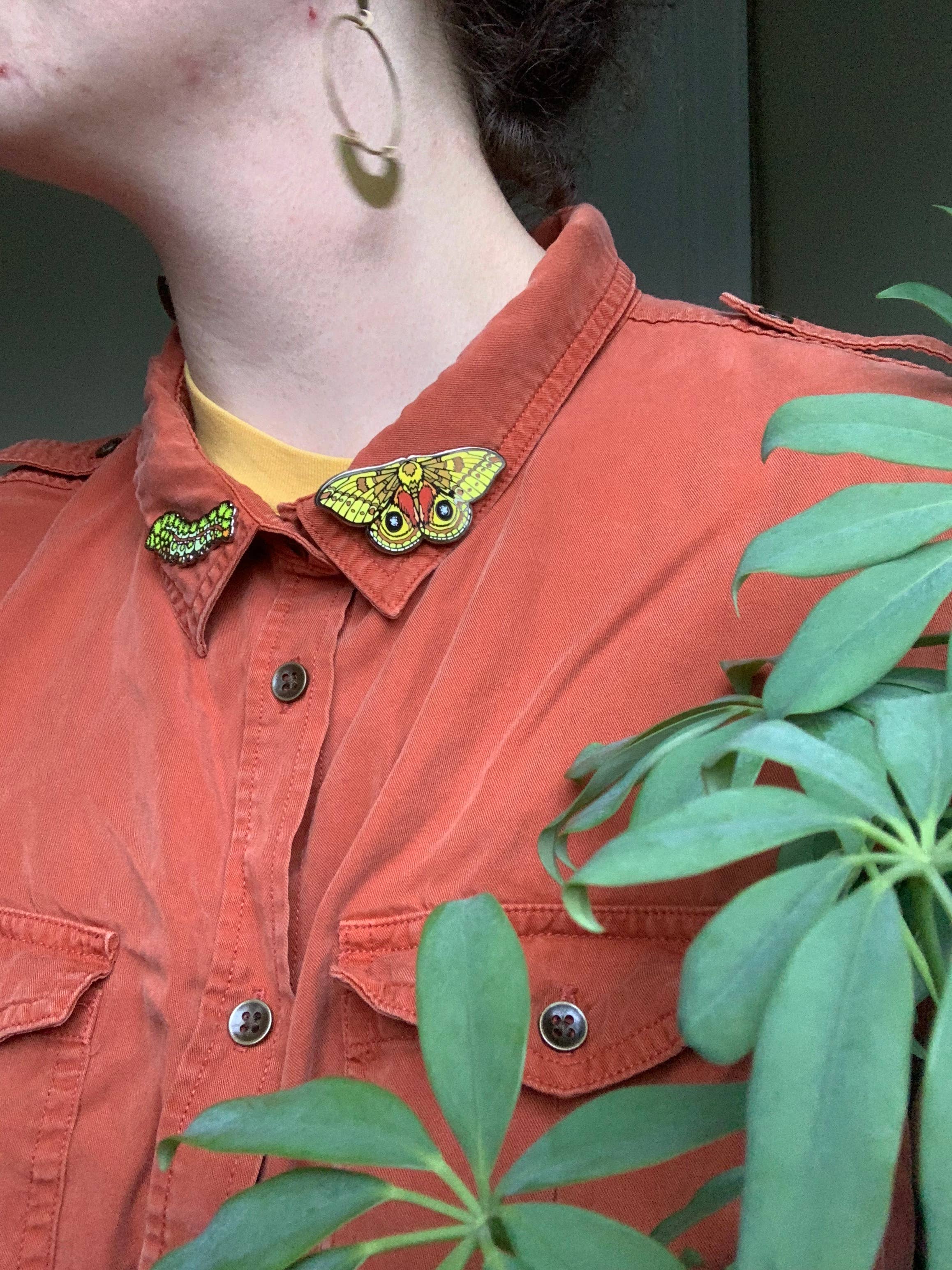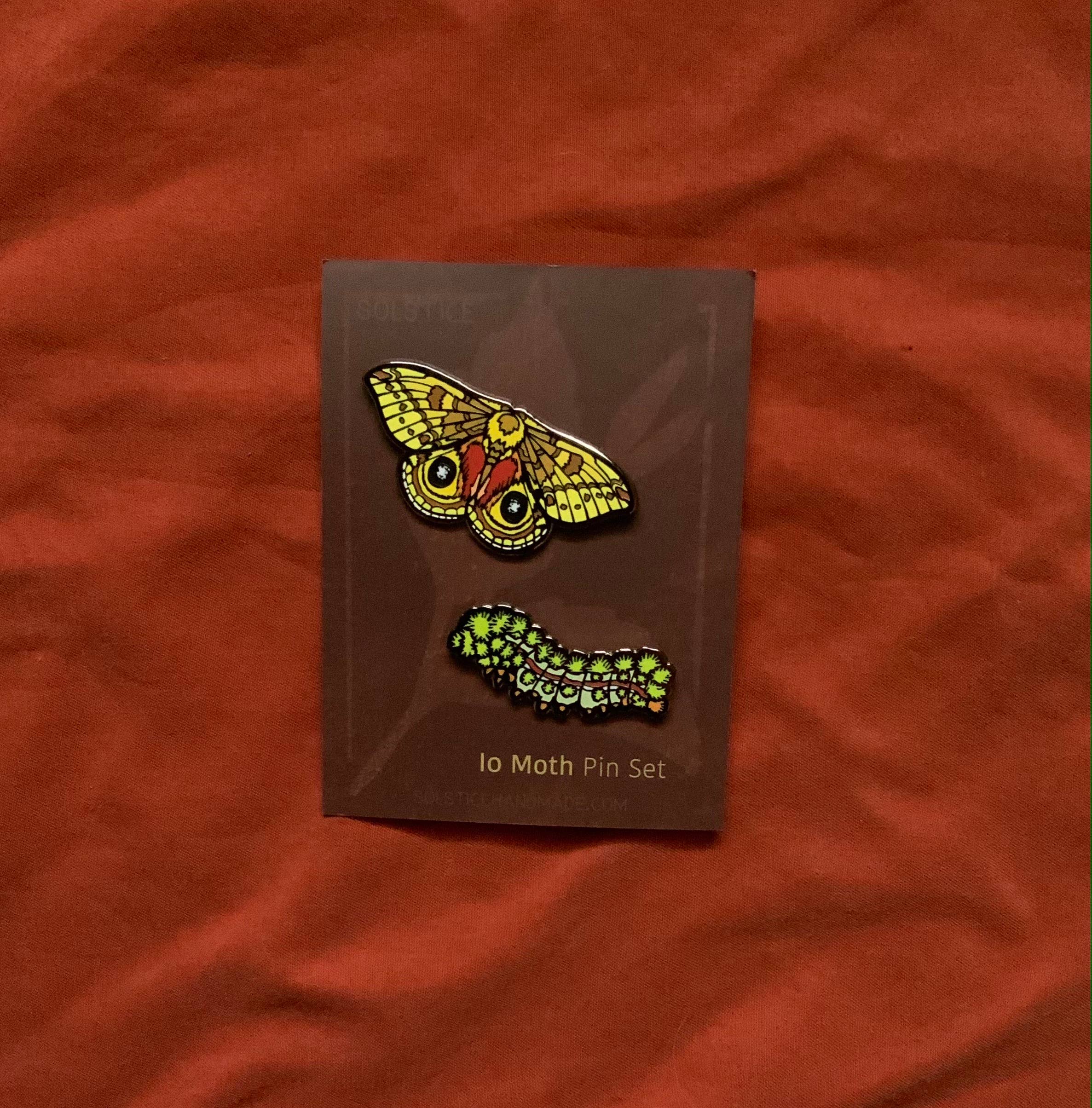 set of 2 apx 1.5in hard enamel pins 2 silver butterfly backings on each comes on a wrapped pin card
