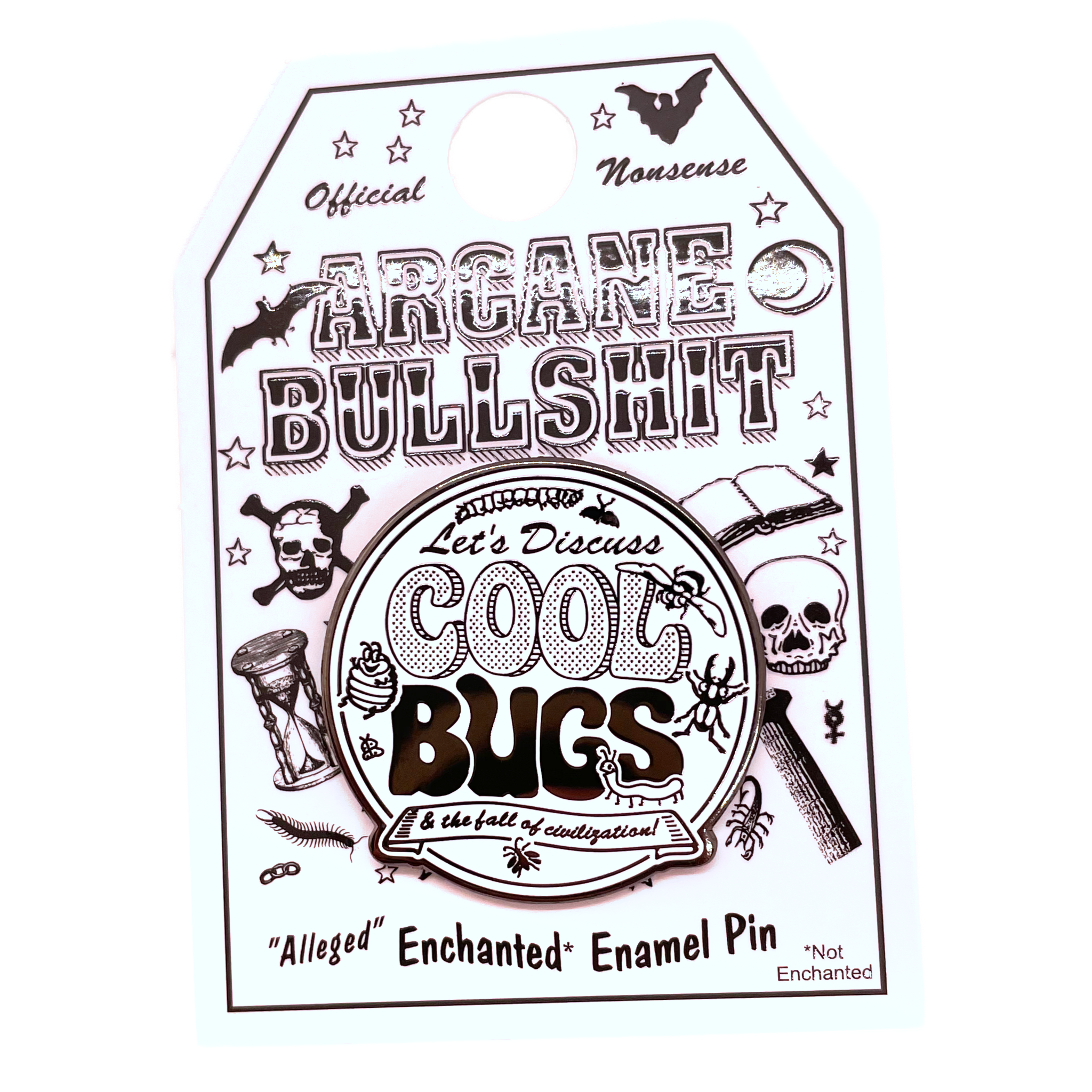 Cool bugs are everywhere, yet people want to talk about stuff like "the male loneliness epidemic?" My sweet, delicate men: just get out there and look at the bugs! Examine the bugs. Discuss the bugs. You will never be lonely again. This handsome enamel pin is made of metal with black nickel plating and measures about 3cm x 3cm. It features a deluxe locking clasp and comes packaged on a cute little card, for your safety and amusement.