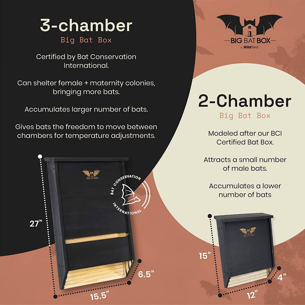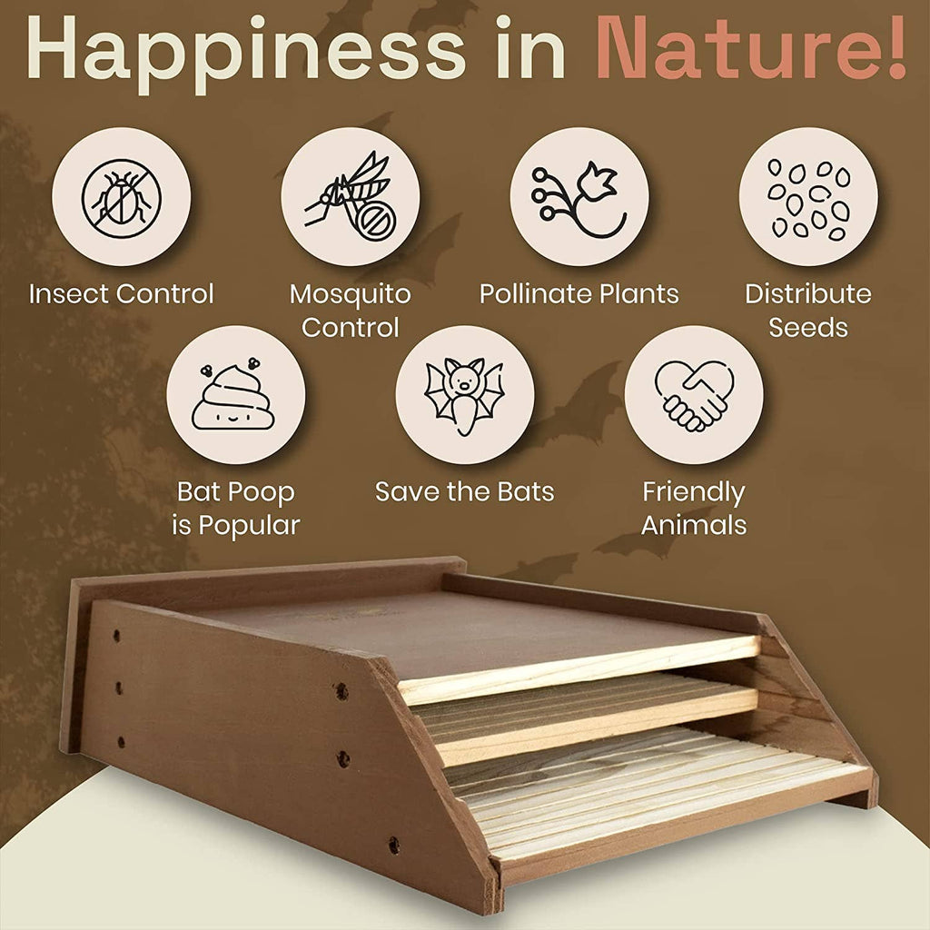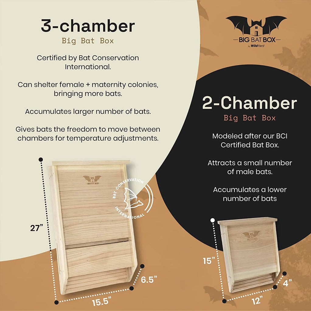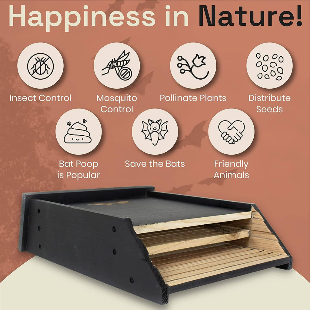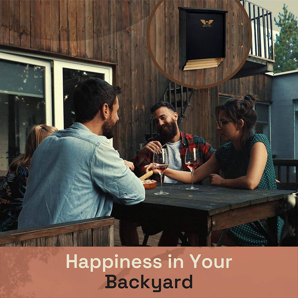 These bat boxes are hand-carved from high-quality Cedar wood and naturally resistant to water, making them ideal for all-weather. The two chambers offer optimal roosting space and excellent conditions for bats to live in. It can hold up to 75 bats, helping to eliminate insects from the backyard.