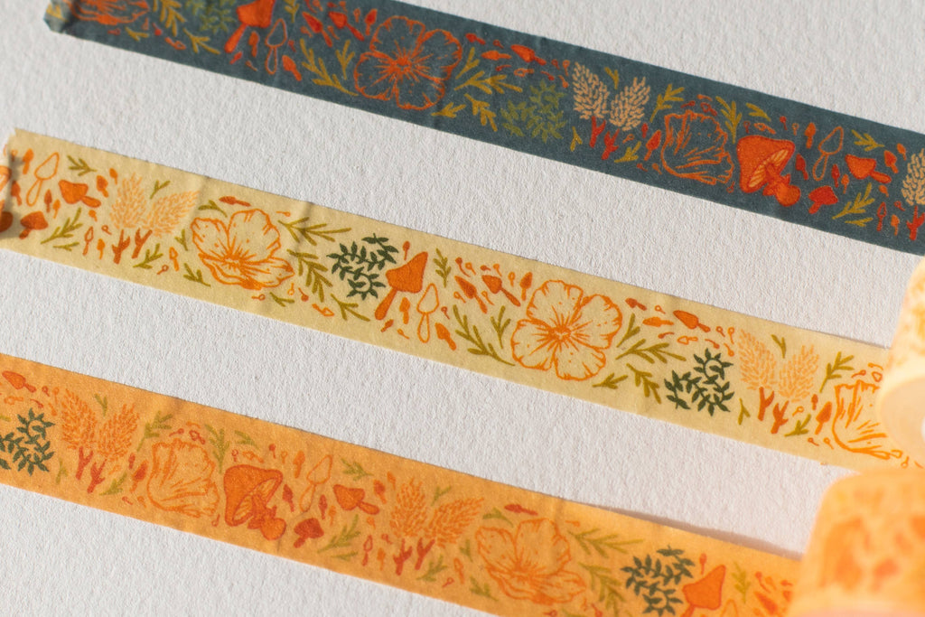 Floral, Poppies + Mushrooms, 1/2" Washi Tape Roll