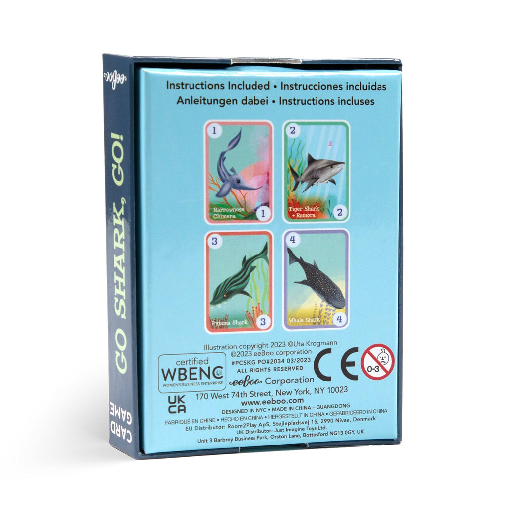 GO SHARK GO! playing card deck for children and families. Easy to learn and fun to play adaptation of Go Fish! Rich and vivid original illustrations that are beautiful and educational. Shark names are included on the cards. A family friendly game.