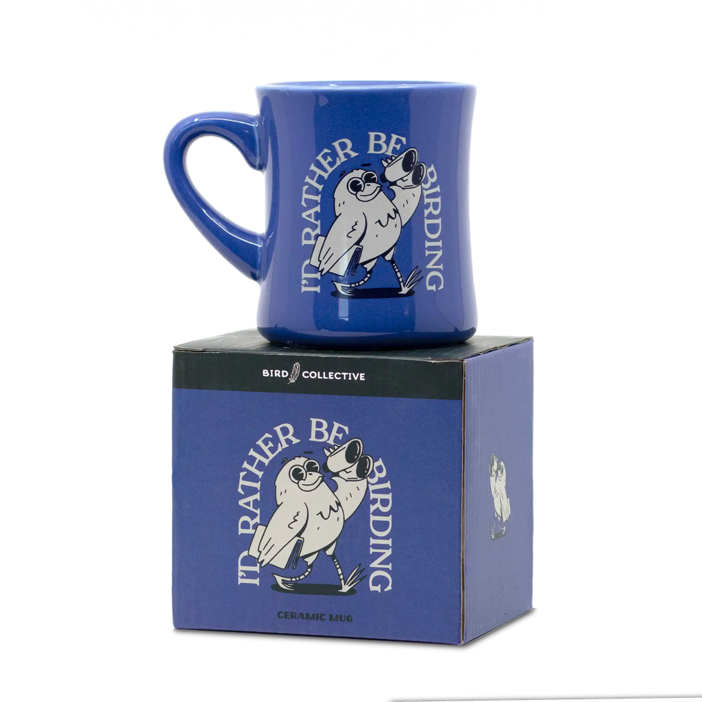 Start your day with a smile with our “I’d Rather Be Birding” mug. Featuring a cartoon bird equipped with binoculars and a book, this classic diner-style mug is perfect for birders and dreamers alike. Its sturdy design and comfortable handle make it ideal for coffee, tea, or cocoa—whether you’re heading into the field or simply wishing you were.