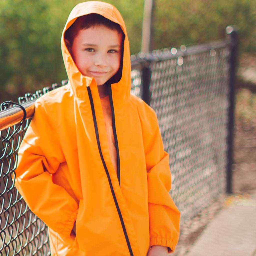 The Kid’s Shell Rain Jacket is a great lightweight, pack-able, seam-sealed rain shell utilizing Polyester PU coated fabric with silky Polyester lining fabric. The 5,000mm rating is rainproof and waterproof under light pressure and has a 3,000mvp rating for breath-ability. This jacket is great for Spring/Summer/Fall coverage and possibly even Winter in warmer climates.
