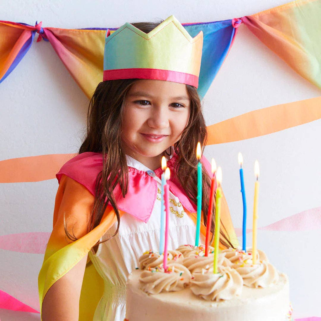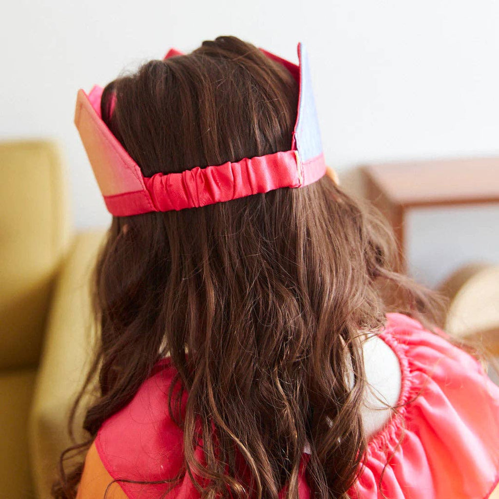 Sold as Case Packs of 3 Single Crown Price - $14 Our Silk Crowns are shiny, beautiful, and fit comfortably! The elastic back allows them to stretch to fit most head sizes. Hand-painted on luminously textured jacquard silk in our most beloved colorways. Children will love incorporating crowns into daily dress-up and imaginative play, plus they're perfect for birthdays and other celebrations! * Dress-up play is the work of the child, and children benefit cognitively, physically, socially, and emotionally through this work. * Open-ended play allows children to express their imagination and support their independence. Children will love to dress up as fairies, dragons, birds, bugs, bats, and more!
