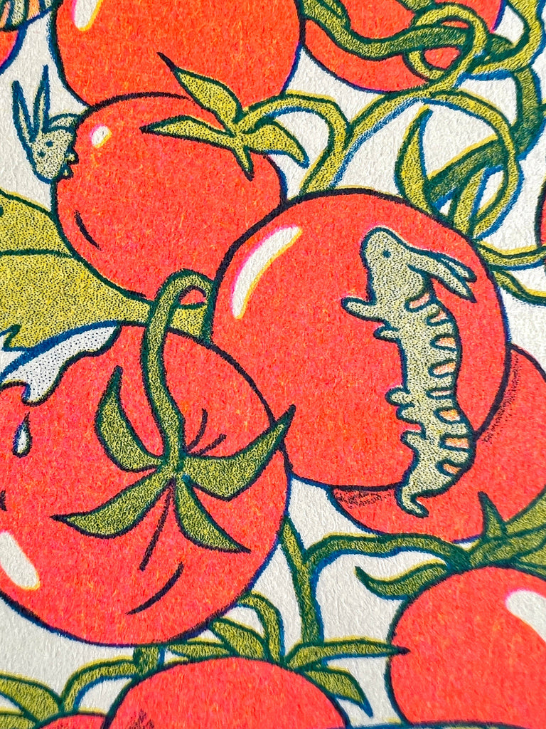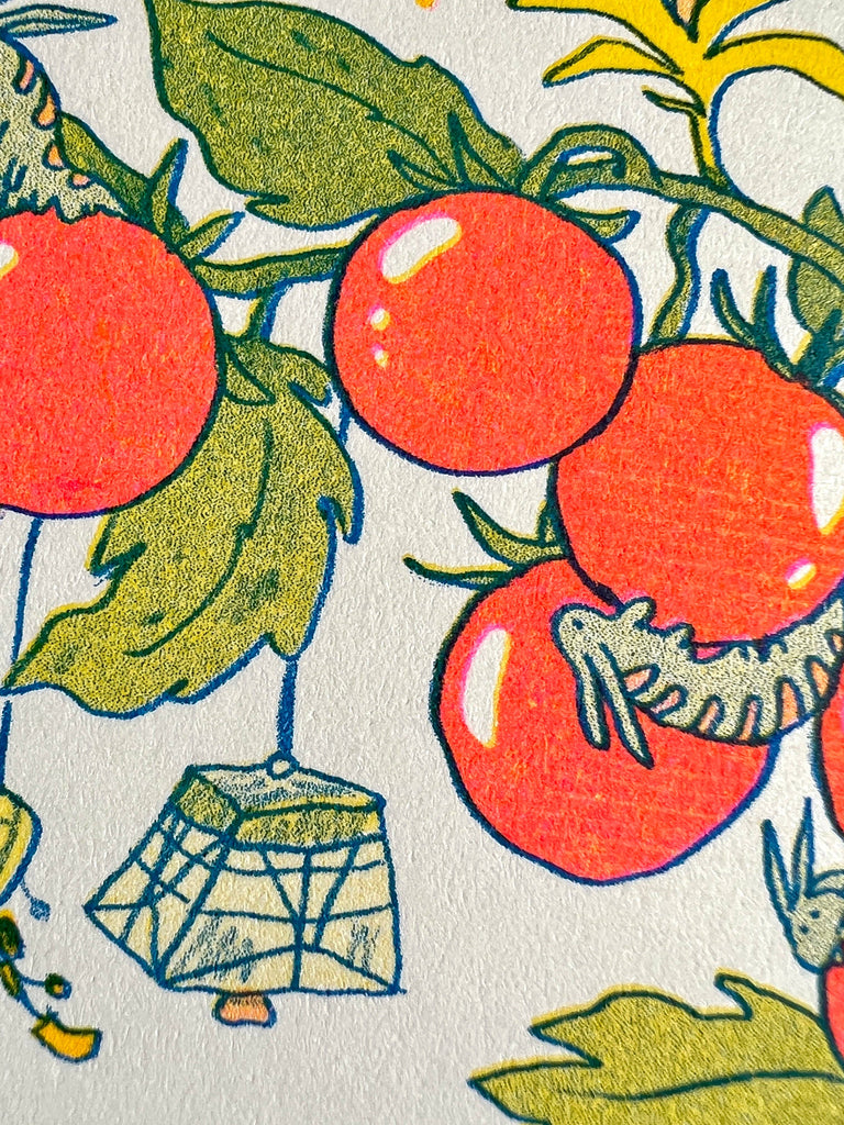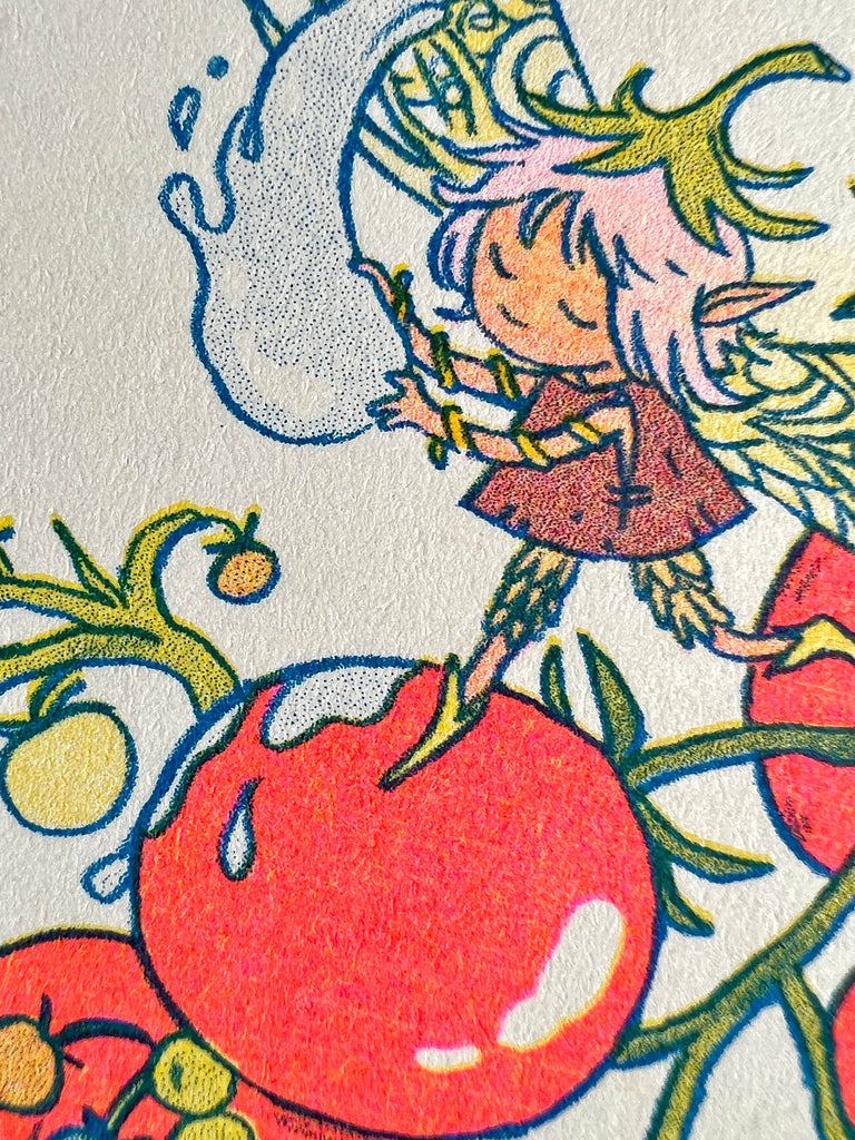 *Riso or Risograph is a printing process made by layering different colored inks to create rich and vibrant images. Because this process requires adding one layer of ink at a time, slight differences in registration are natural and sometimes roller marks from the machine can occur.