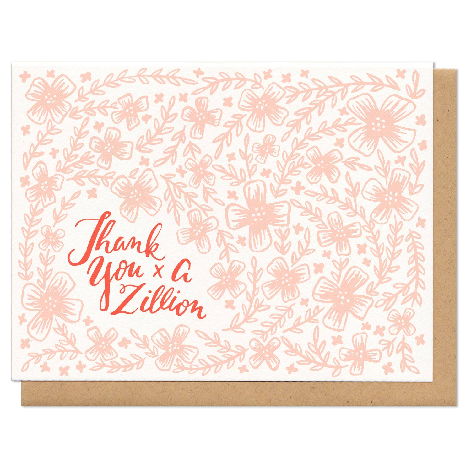 Thank you (times) a zillion. Printed in Providence, RI A2, 100#, 100% recycled white paper A2 sized kraft paper envelope Blank inside Sealed plastic sleeve