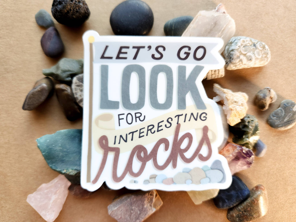 Rock-hounding or "looking or cool rocks" is a hobby enjoyed by folks all over the world. There are so many interesting rocks out there - and those rocks tell a story about the history of our planet. The sticker measures 3 inches by 2.75 inches and is made of a water resistant, durable vinyl, perfect for adhering to a water bottle, laptop or more.