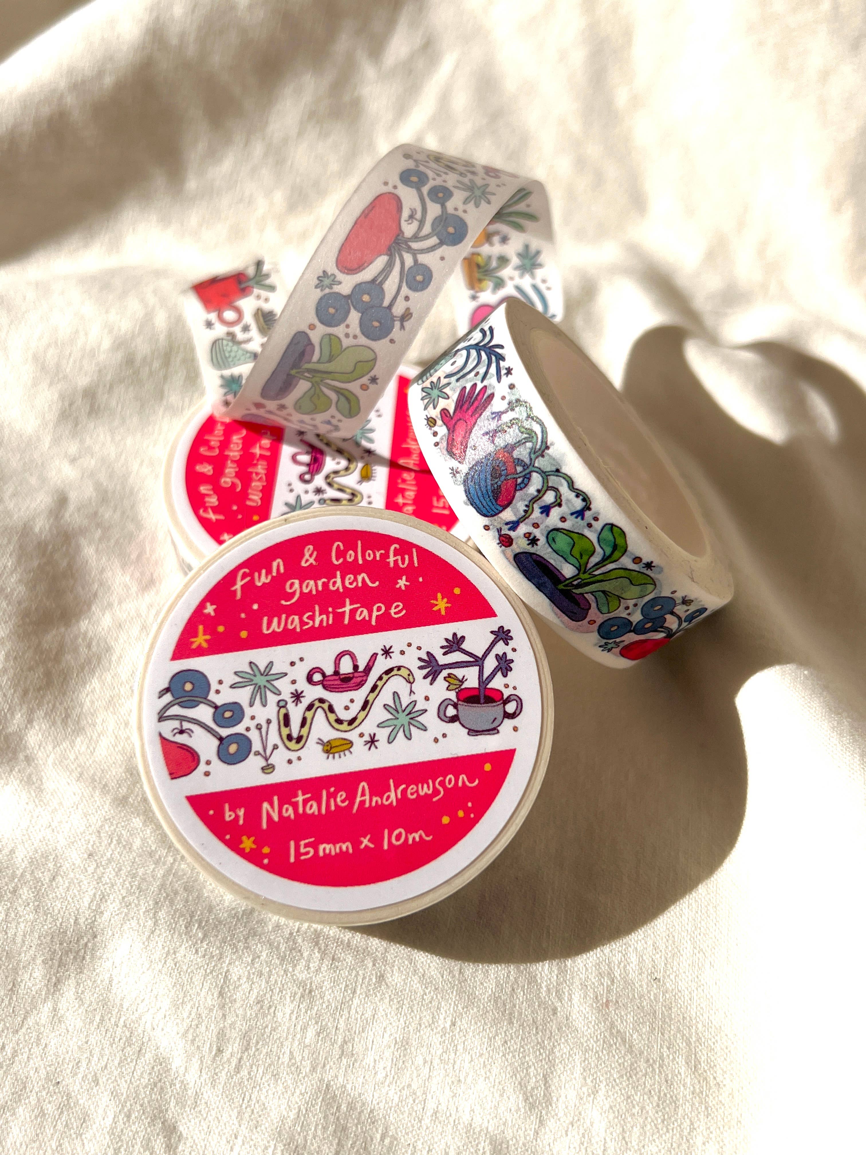 This washi features a vibrant garden with little bugs and even a snake! This roll is 15mm wide x 10m of paper tape. Washi tape is super durable and flexible. It tears easily and can be safely applied to a variety of surfaces; it doesn’t leave a sticky residue behind, making it especially ideal for stationery and hanging prints temporarily.