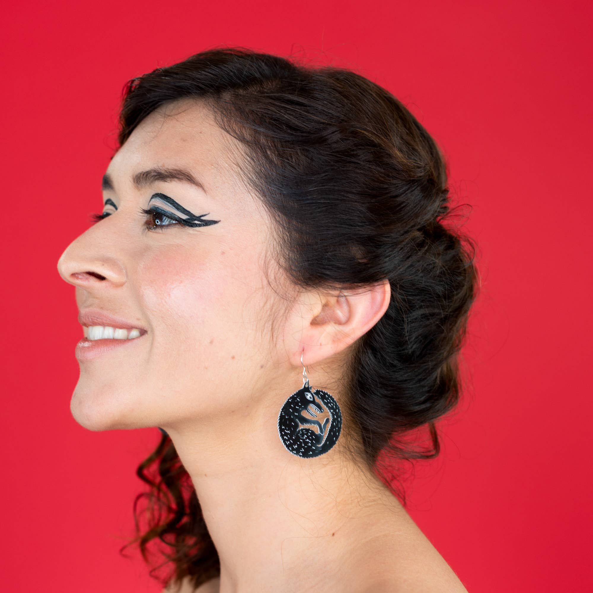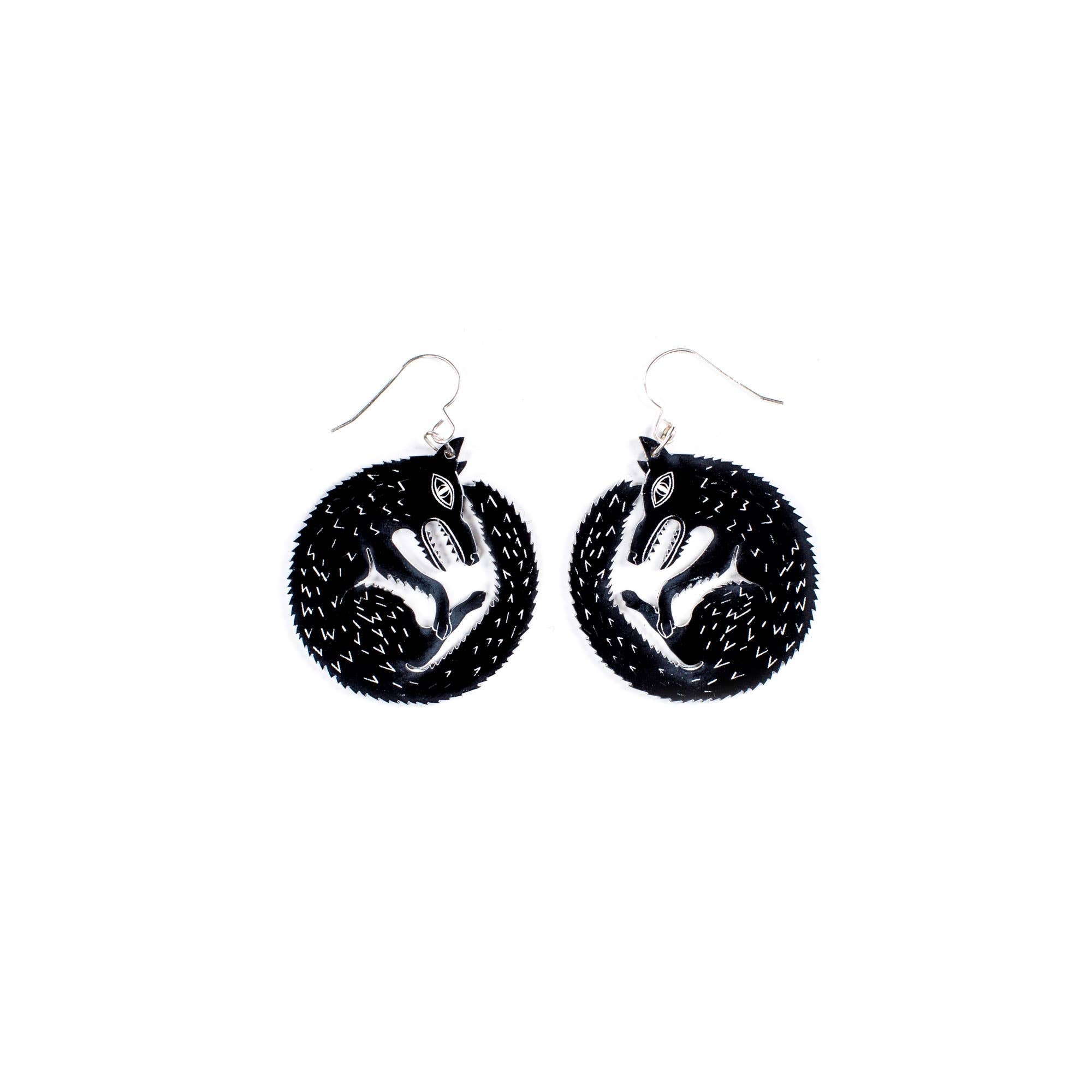 The Bestiary Collection consists of necklaces, earrings and pins that are all inspired by the drawings of animals in medieval manuscripts. The pieces are made from laser-cut acrylic. These are smaller versions of our popular Wolf earrings - each earring is 1.5 inches across and finished with sterling silver-filled ear wires.