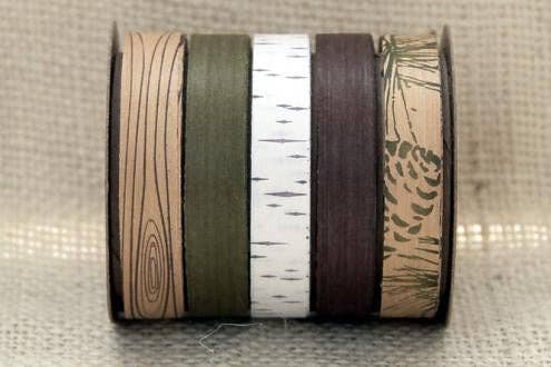 These ribbons take our tree-hugging heart and puts it square on our sleeve for all to see. Now you can you have natural ribbons with tree colors and patterns at your fingertips. Five ribbons of 5 yards each, 25 yards total! * Wood Grain, Fern, Birch, Brown and Fern Pine Cone ribbons.